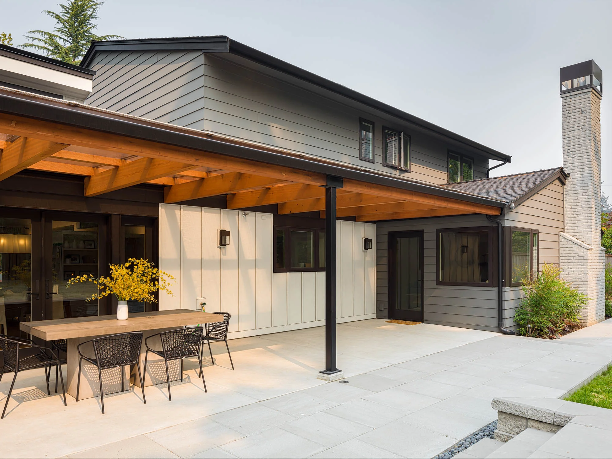 The owners of the 1969 Residence asked us to take a classic tract rambler on Mercer Island and remake it specially for a young and growing family. The forms are fine, they said, but the look and feel were to be clean and modern, yet, at the same time, also inviting in the traditional sense of home. We often call this “transitional” design in the industry, but it is also a free realm to employ materials and details in a unique way, specific to the lifestyles and tastes of the client. The team drew from the Northwest modern heritage, inspired by the owners preferences for functional clarity and gathering spaces filled with light, to renew a solid home for a new purpose.